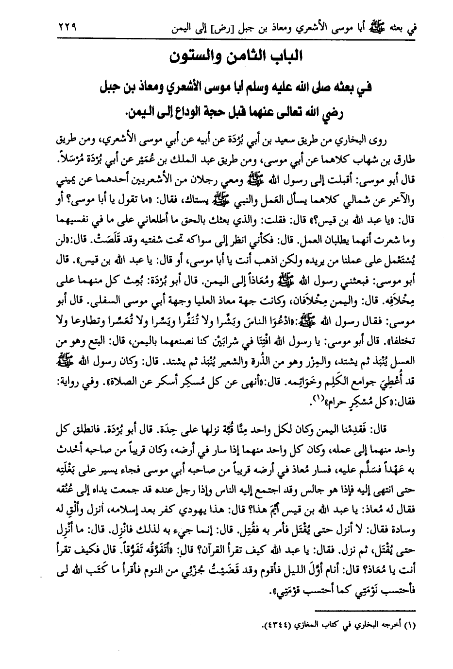 الباب الثامن والستون في بعثة صلّى اللَّه عليه وسلم أبا موسى الأشعري ومعاذ بن جبل رضي اللَّه تعالى عنهما قبل حجة الوداع إلى اليمن.