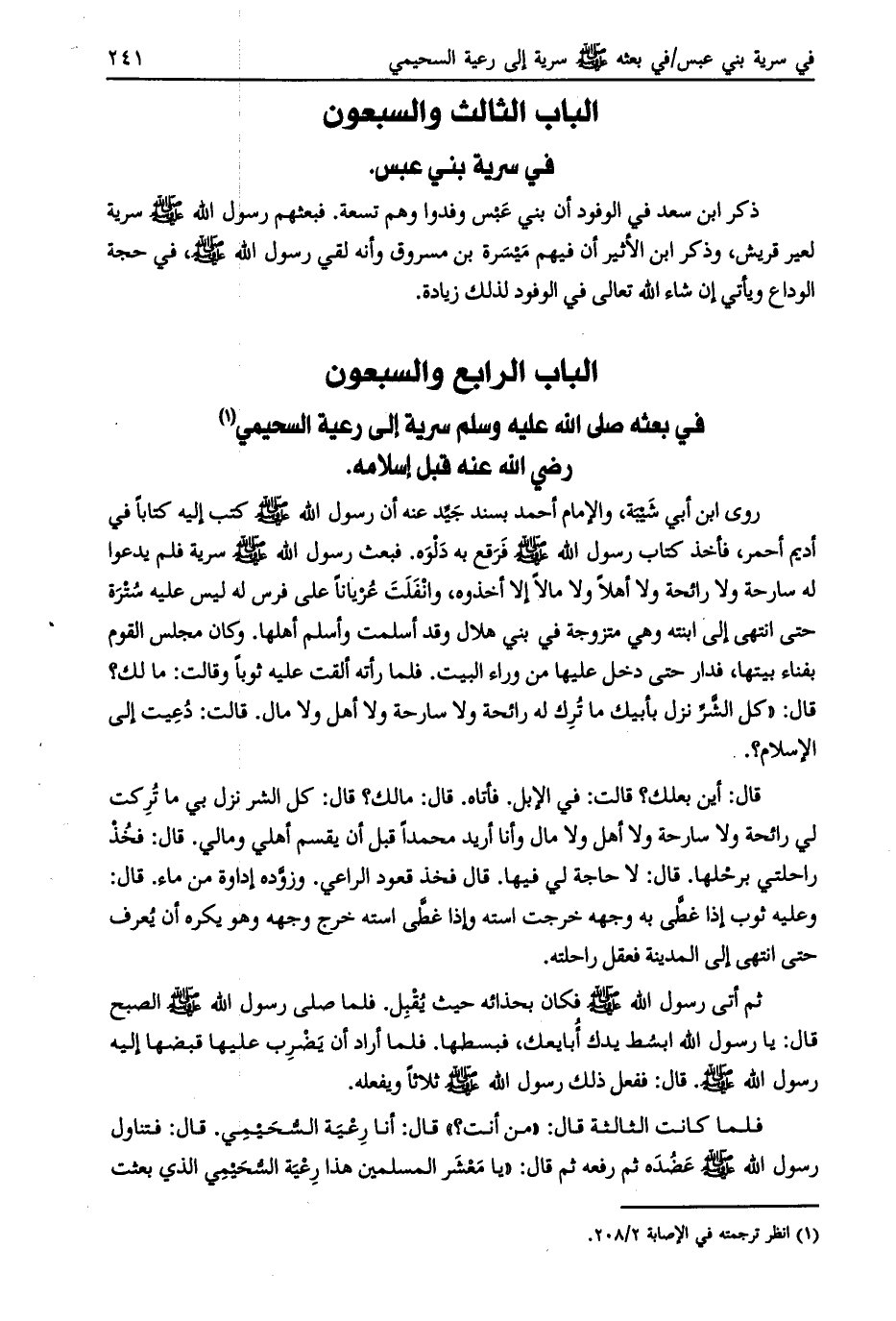 الباب الرابع والسبعون في بعثة صلّى الله عليه وسلم سرية إلى رعية السّحيمي