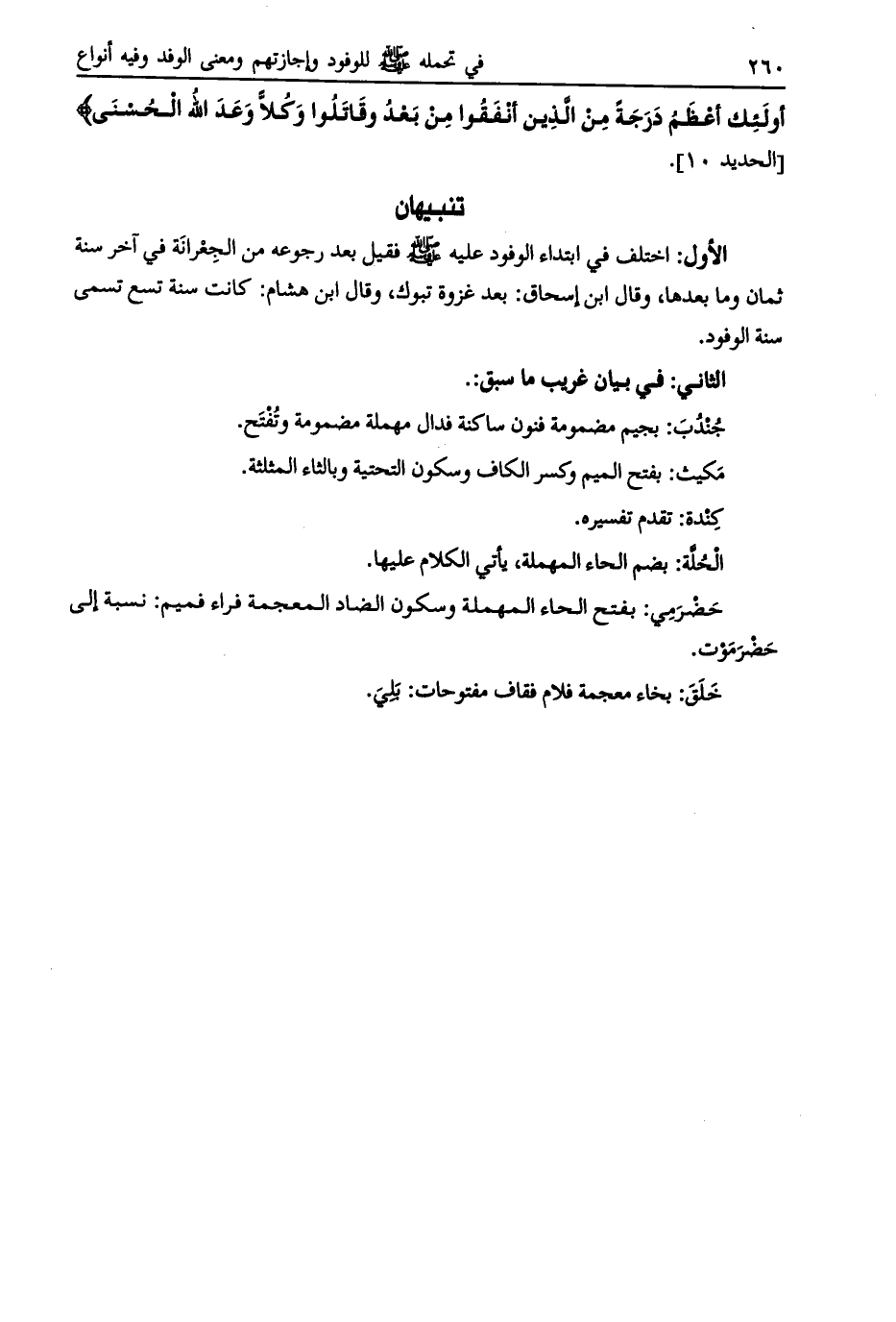 الأول: اختلف في ابتداء الوفود عليه صلى اللَّه عليه وسلم فقيل بعد رجوعه من الجعرانة في آخر سنة ثمان وما بعدها، وقال ابن إسحاق: بعد غزوة تبوك، وقال ابن هشام: كانت سنة تسع تسمى سنة الوفود.