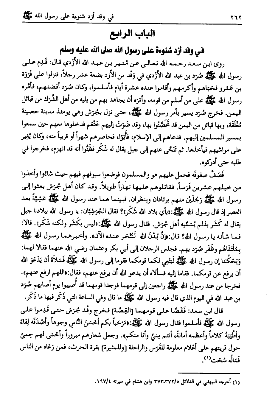 الباب الرابع في وفد أزد شنوءة على رسول اللَّه صلى اللَّه عليه وسلم