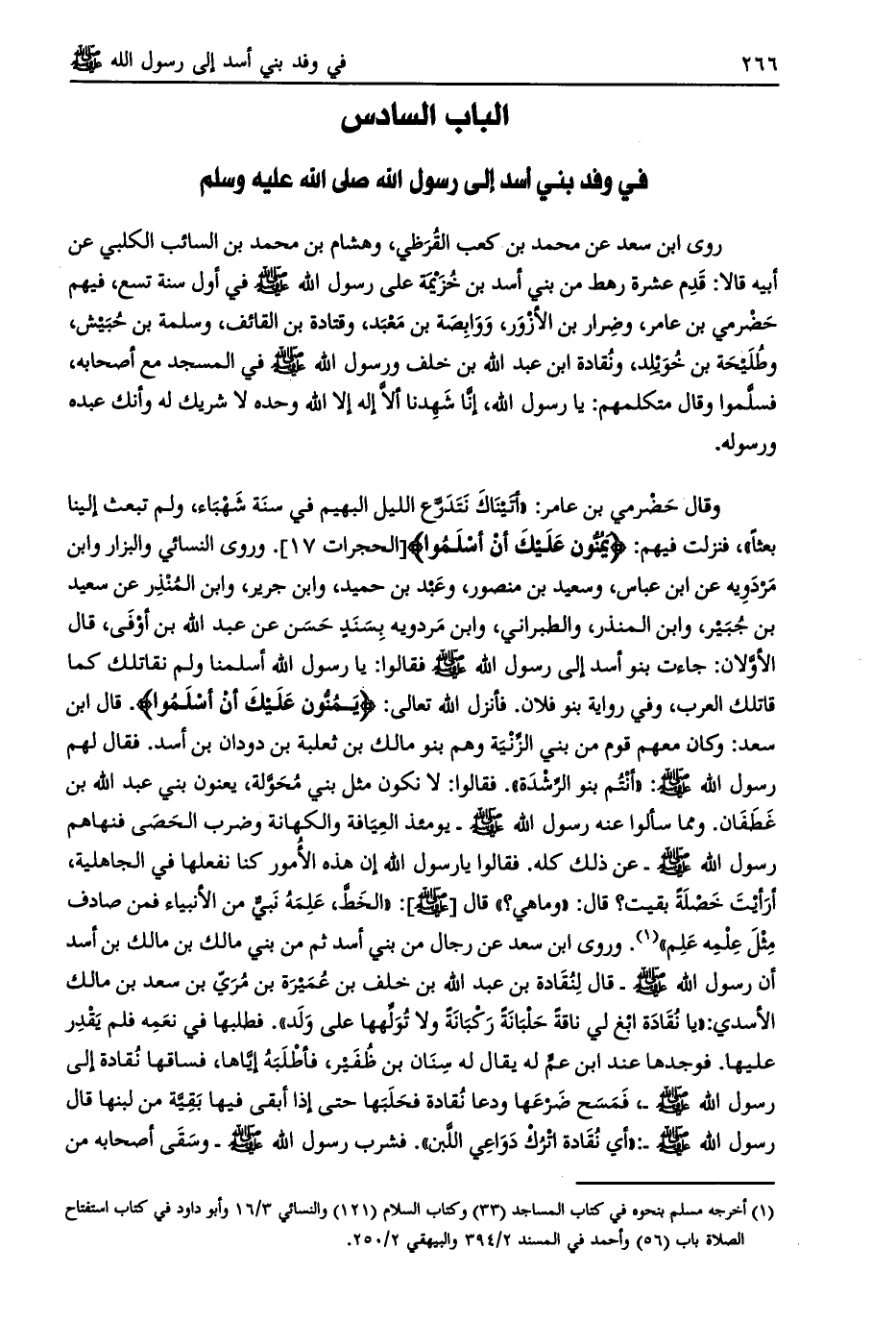 الباب السادس في وفد بني أسد إلى رسول الله صلى الله عليه وسلم
