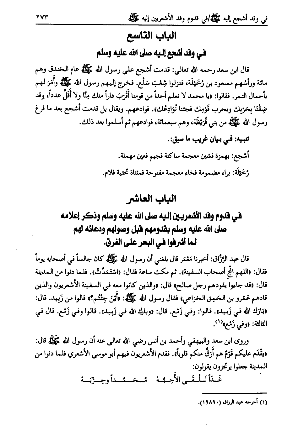 الباب التاسع في وفد أشجع إليه صلّى الله عليه وسلم