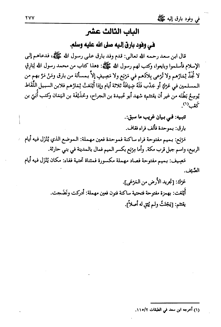 الباب الثالث عشر في وفود بارق إليه صلى الله عليه وسلم.