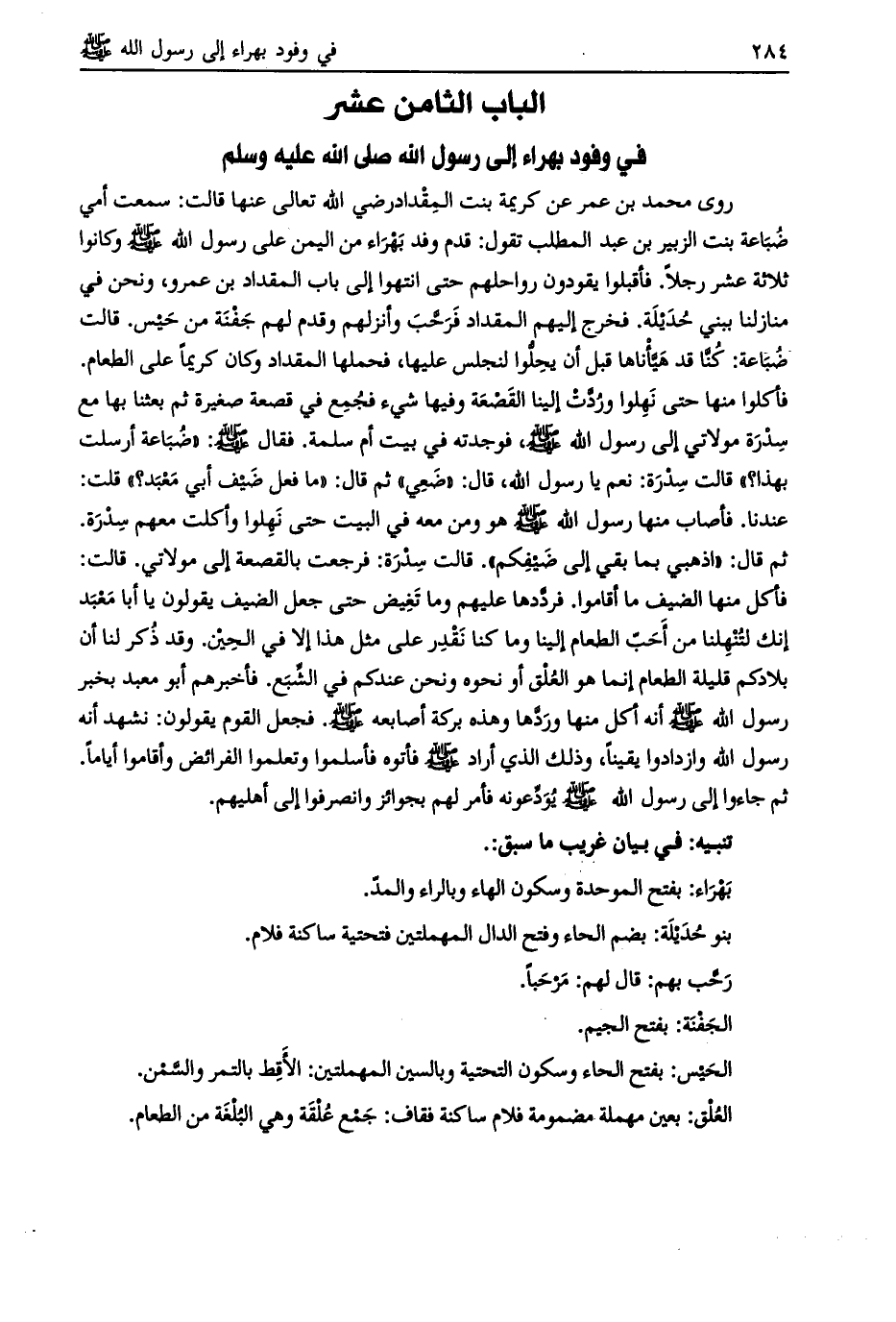 الباب الثامن عشر في وفود بهراء إلى رسول الله صلى الله عليه وسلم