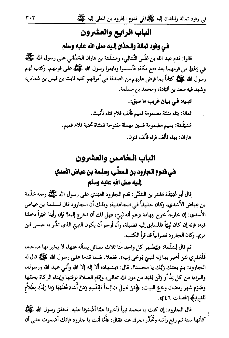 الباب الخامس والعشرون في قدوم الجارود بن المعلّى، وسلمة بن عياض الأسدي إليه صلى الله عليه وسلم