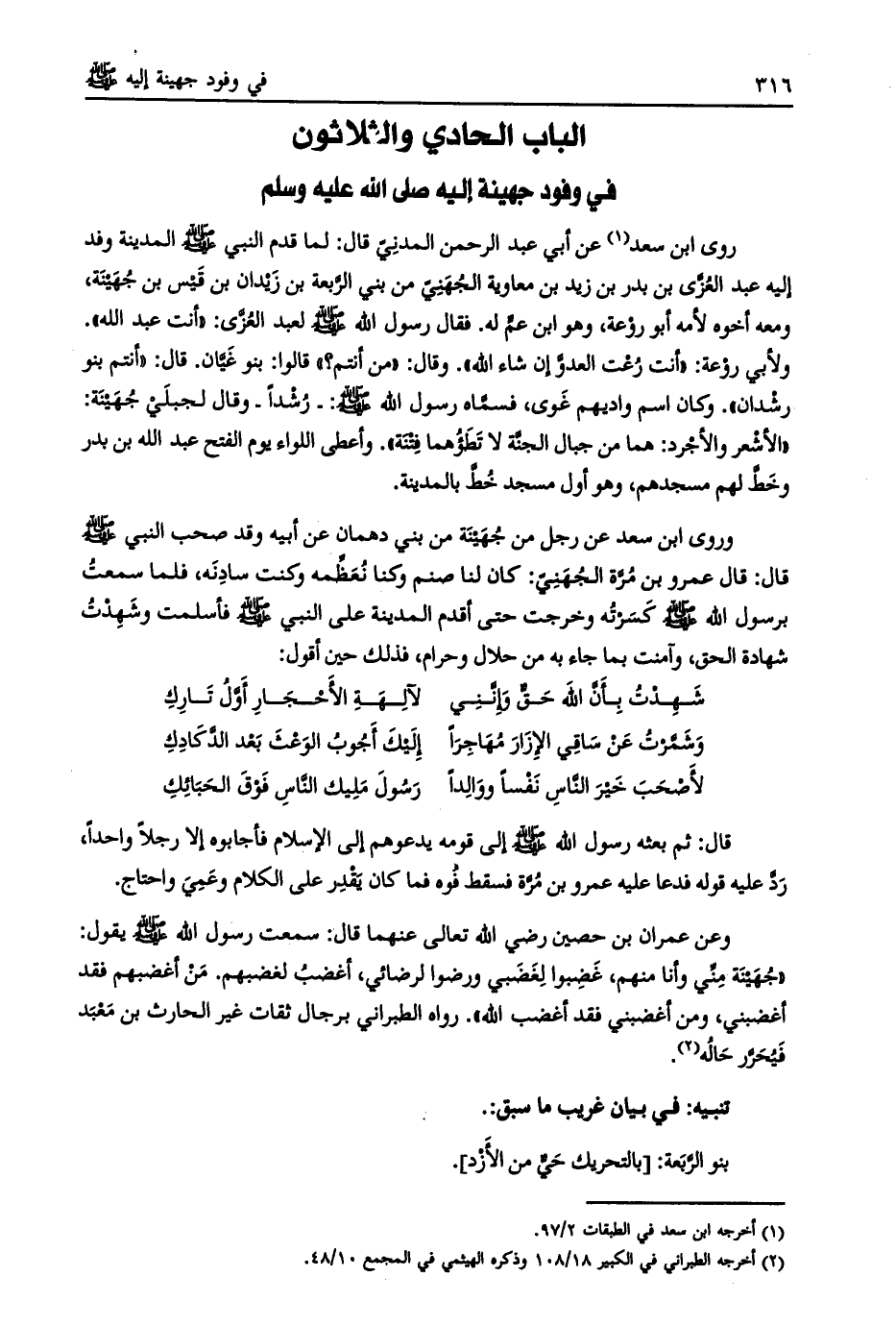 الباب الحادي والثلاثون في وفود جهينة إليه صلى اللَّه عليه وسلم