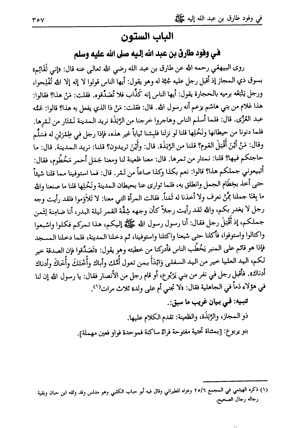 الباب الستون في وفود طارق بن عبد الله إليه صلى اللَّه عليه وسلم