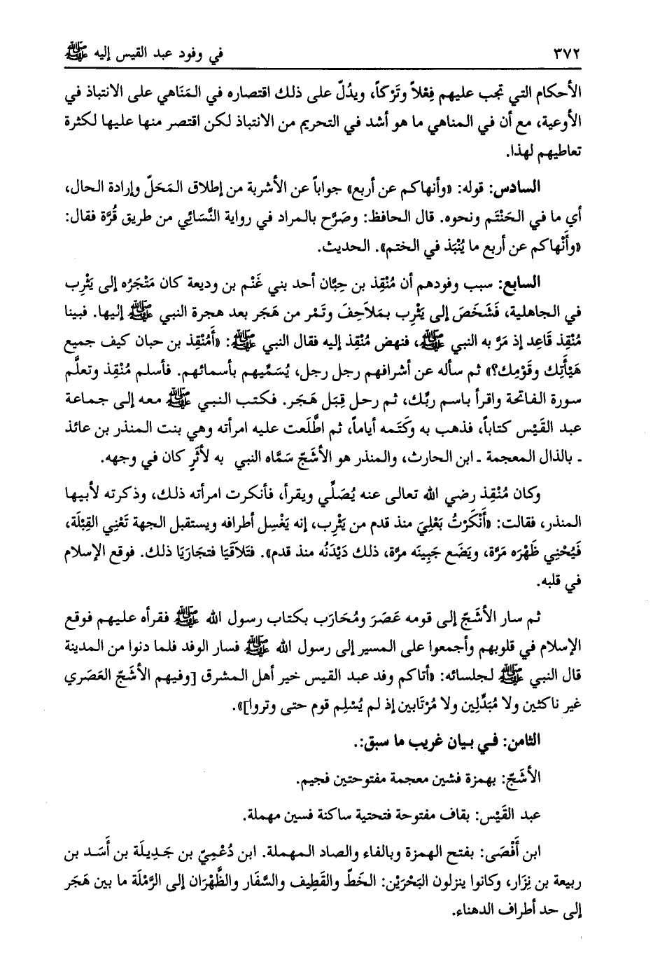 قال النبي صلى الله عليه وسلم لجلسائه: «أتاكم وفد عبد القيس خير أهل المشرق [وفيهم الأشجّ العصري غير ناكثين ولا مبدلين ولا مرتابين إذ لم يسلم قوم حتى وتروا] » .