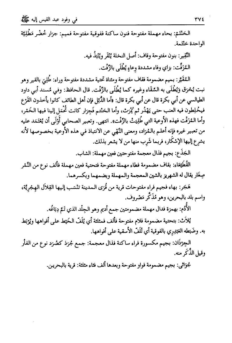 المزفّت: بزاي وفاء مشددة ورعاء يطلى بالزّفت.