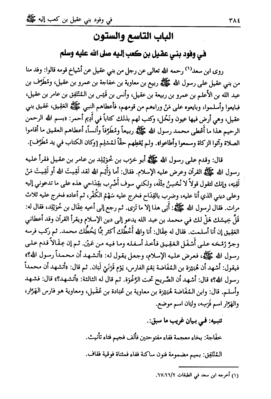 الباب التاسع والستون في وفود بني عقيل بن كعب إليه صلى الله عليه وسلم
