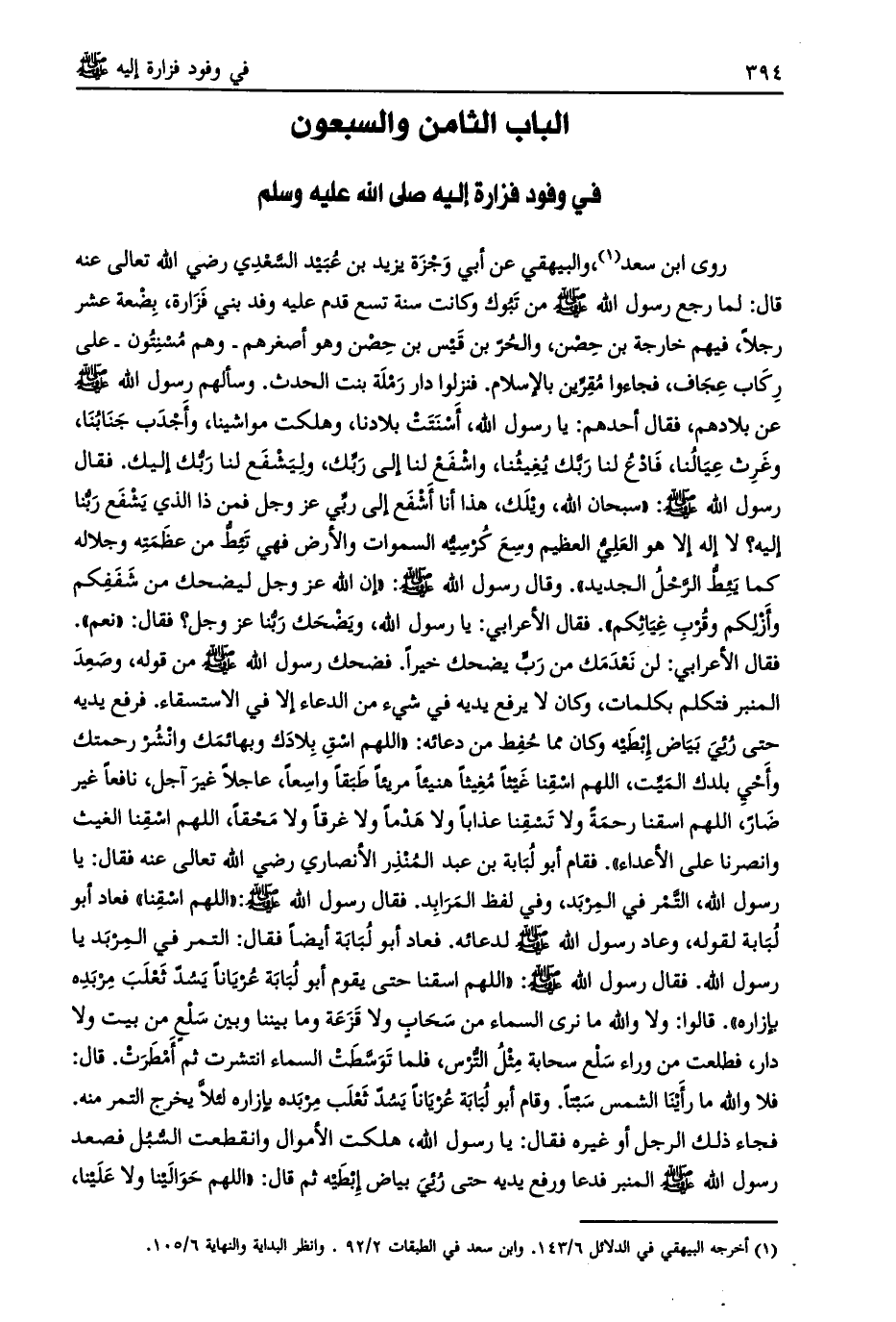 الباب الثامن والسبعون في وفود فزارة إليه صلّى الله عليه وسلم
