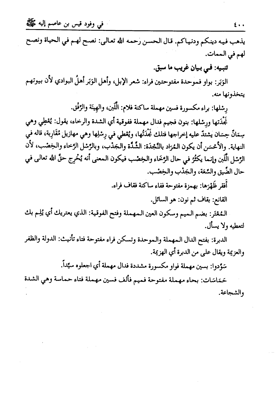 الوبر: بواو فموحدة مفتوحتين فراء: شعر الإبل، وأهل الوبر أهل البوادي لأن بيوتهم يتخذونها منه.