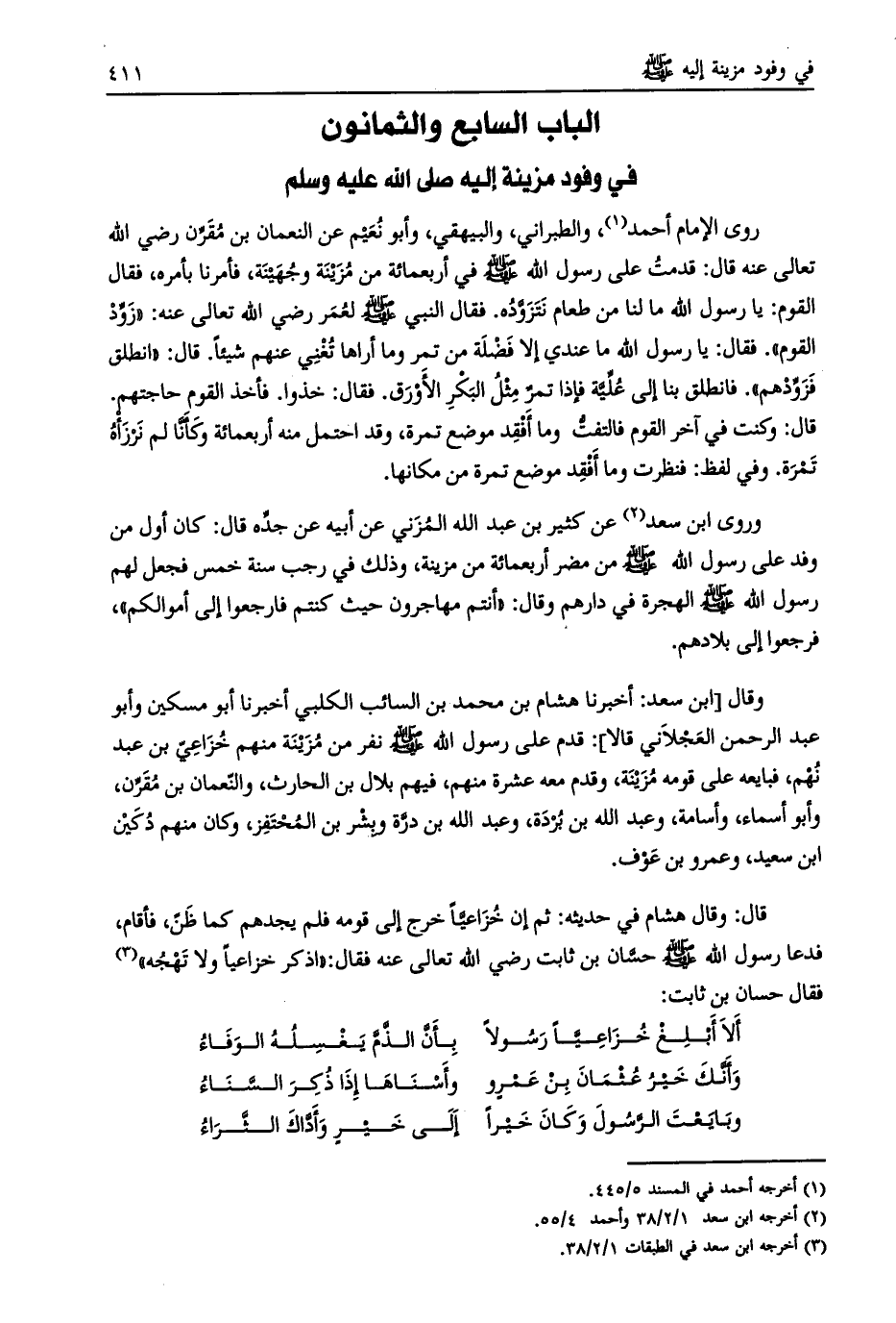 الباب السابع والثمانون في وفود مزينة إليه صلى الله عليه وسلم