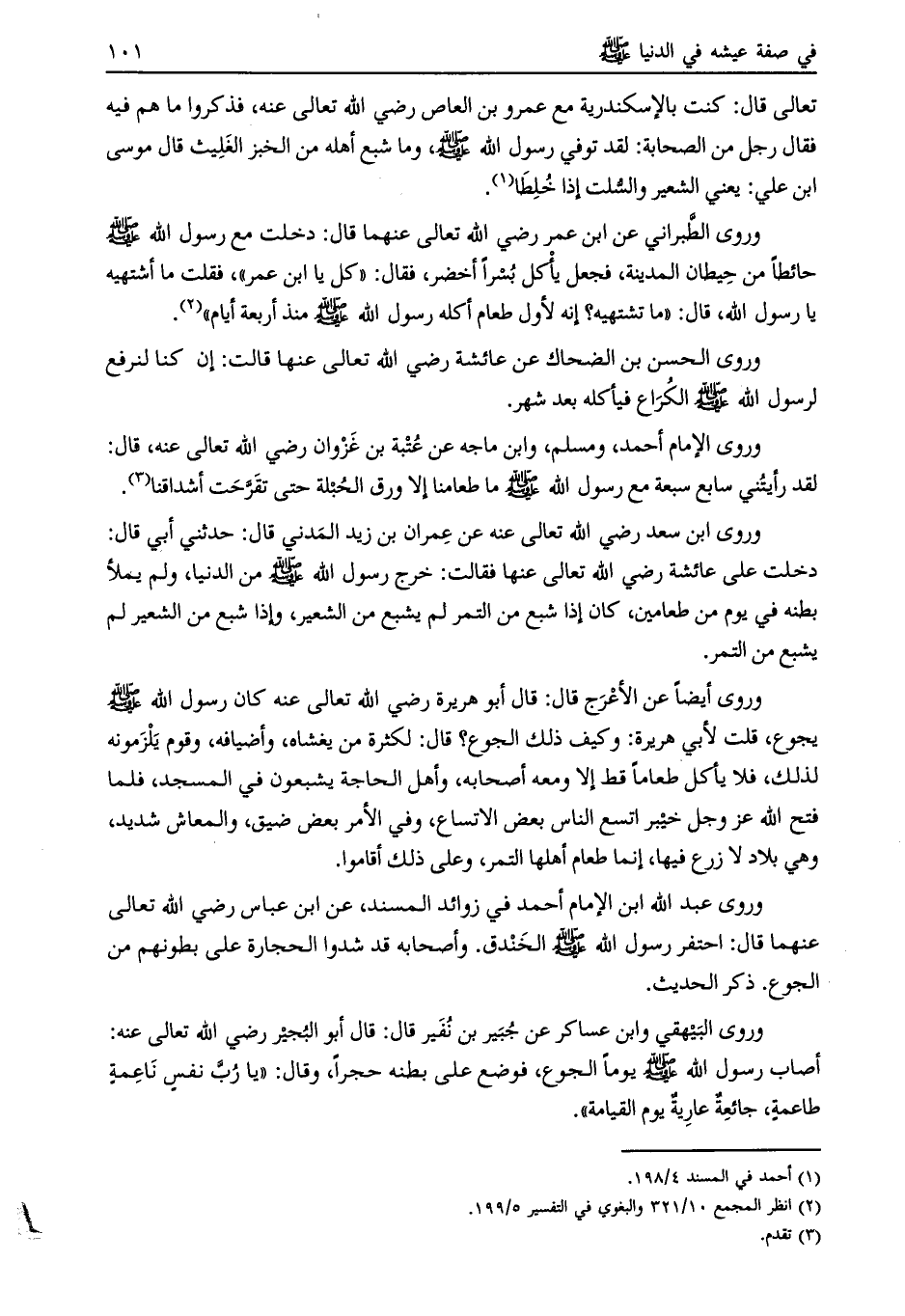 دخلت على عائشة رضي الله تعالى عنها فقالت: خرج رسول الله صلى الله عليه وسلّم من الدنيا، ولم يملأ بطنه في يوم من طعامين، كان إذا شبع من التمر لم يشبع من الشعير، وإذا شبع من الشعير لم يشبع من التمر.
