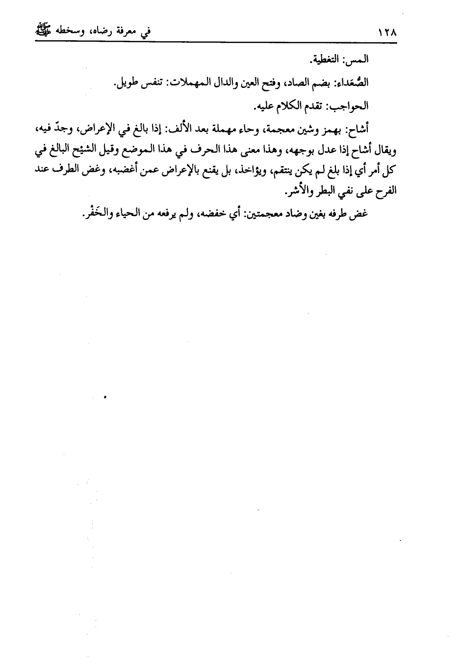 أشاح: بهمز وشين معجمة، وحاء مهملة بعد الألف: إذا بالغ في الإعراض، وجدّ فيه، ويقال أشاح إذا عدل بوجهه، وهذا معنى هذا الحرف في هذا الموضع وقيل الشيح البالغ في كل أمر أي إذا بلغ لم يكن ينتقم، ويؤاخذ، بل يقنع بالإعراض عمن أغضبه، وغض الطرف عند الفرح على نفي البطر والأشر.