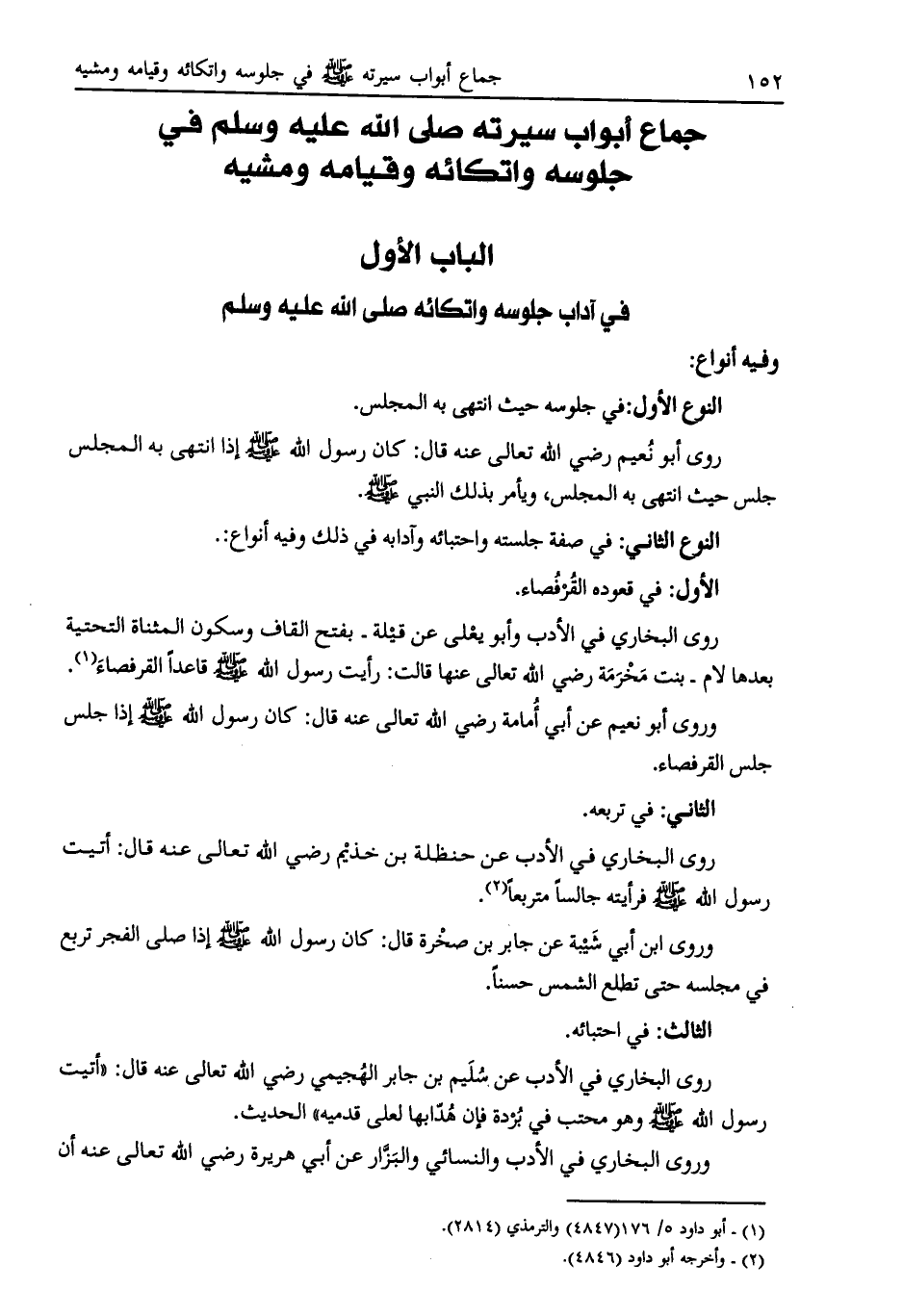 الباب الأول في آداب جلوسه واتكائه صلى الله عليه وسلم