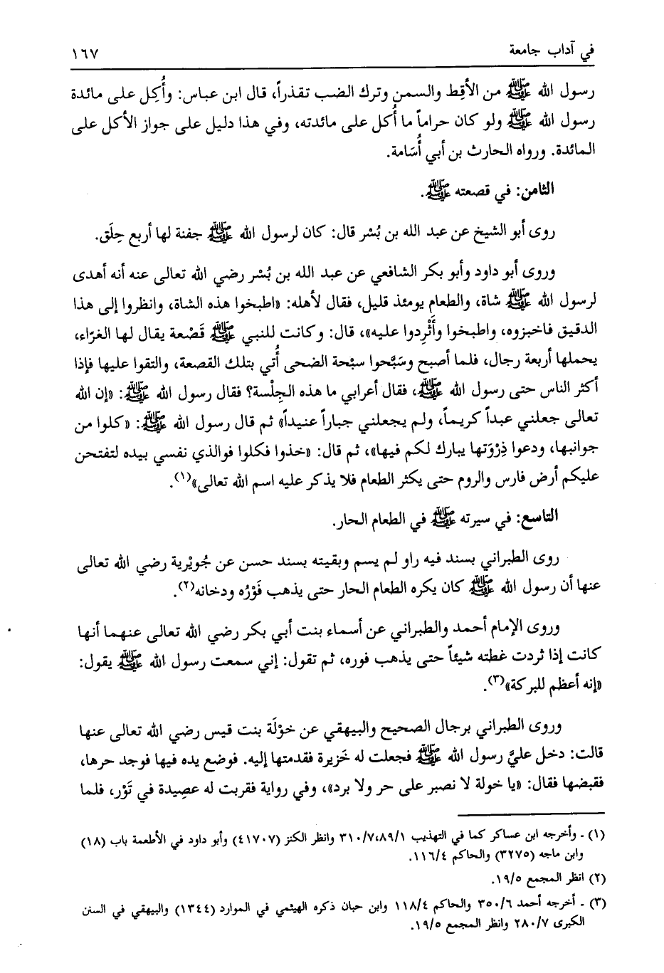 التاسع: في سيرته صلّى الله عليه وسلم في الطعام الحار.