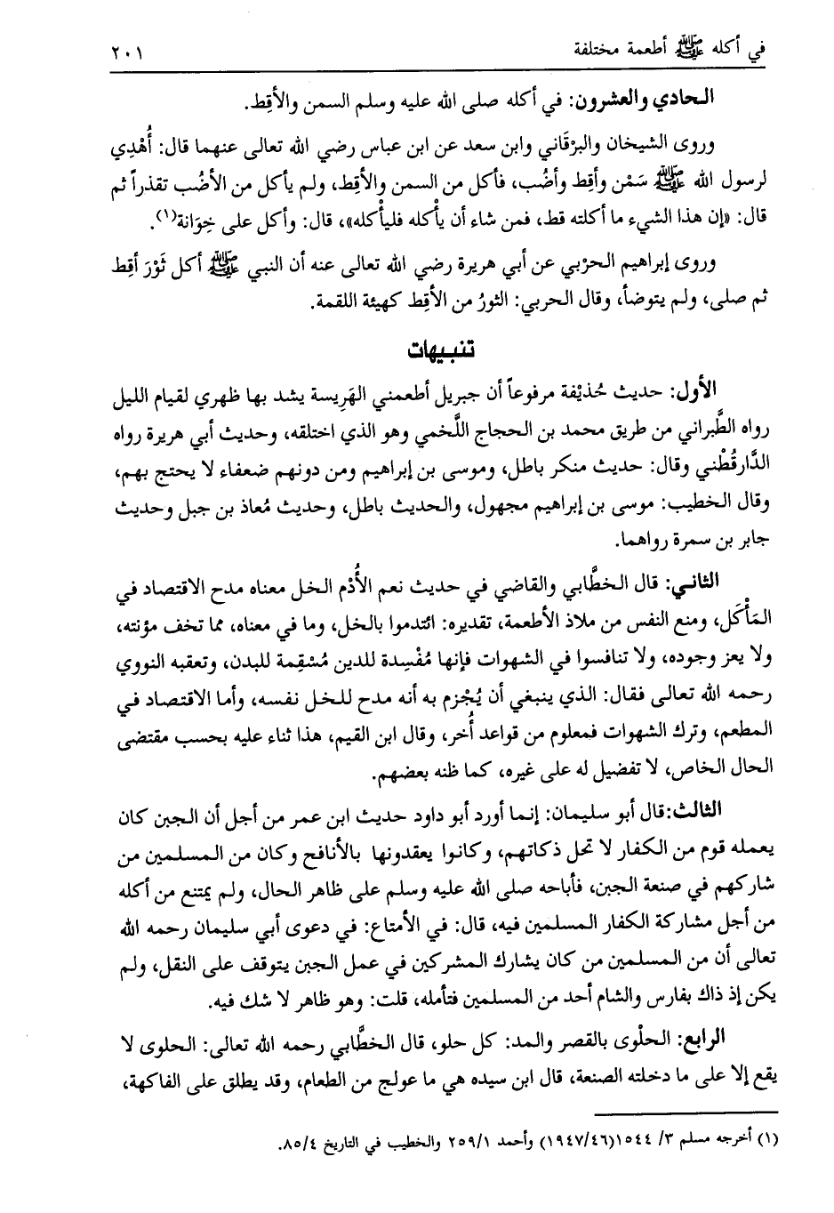 وروى الشيخان والبرقاني وابن سعد عن ابن عباس رضي الله تعالى عنهما قال: أهدى لرسول الله صلى الله عليه وسلّم سمن وأقط وأضب، فأكل من السمن والأقط، ولم يأكل من الأضب تقذرا ثم قال: «إن هذا الشيء ما أكلته قط، فمن شاء أن يأكله فليأكله» ،