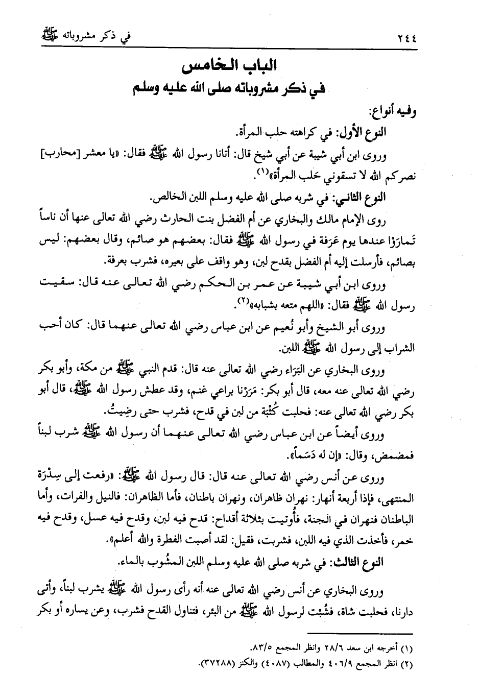 الباب الخامس في ذكر مشروباته صلّى الله عليه وسلم
