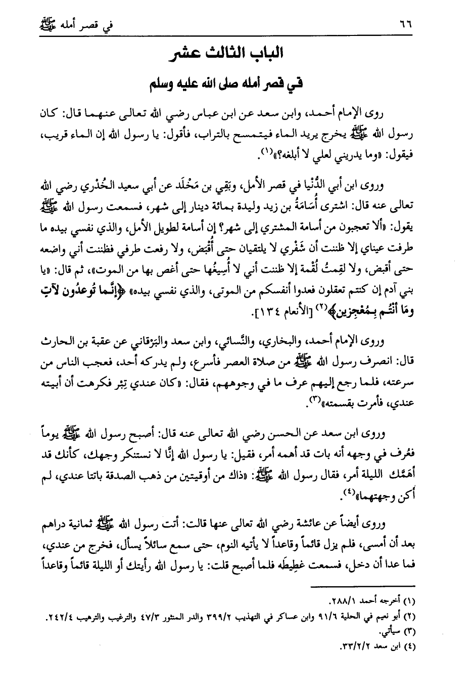 الباب الثالث عشر في قصر أمله صلّى الله عليه وسلم