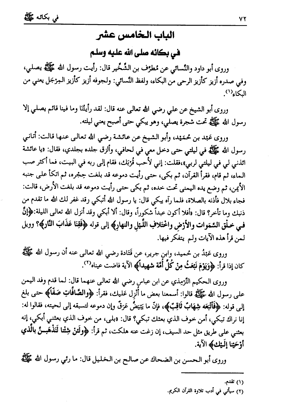 الباب الخامس عشر في بكائه صلى الله عليه وسلم