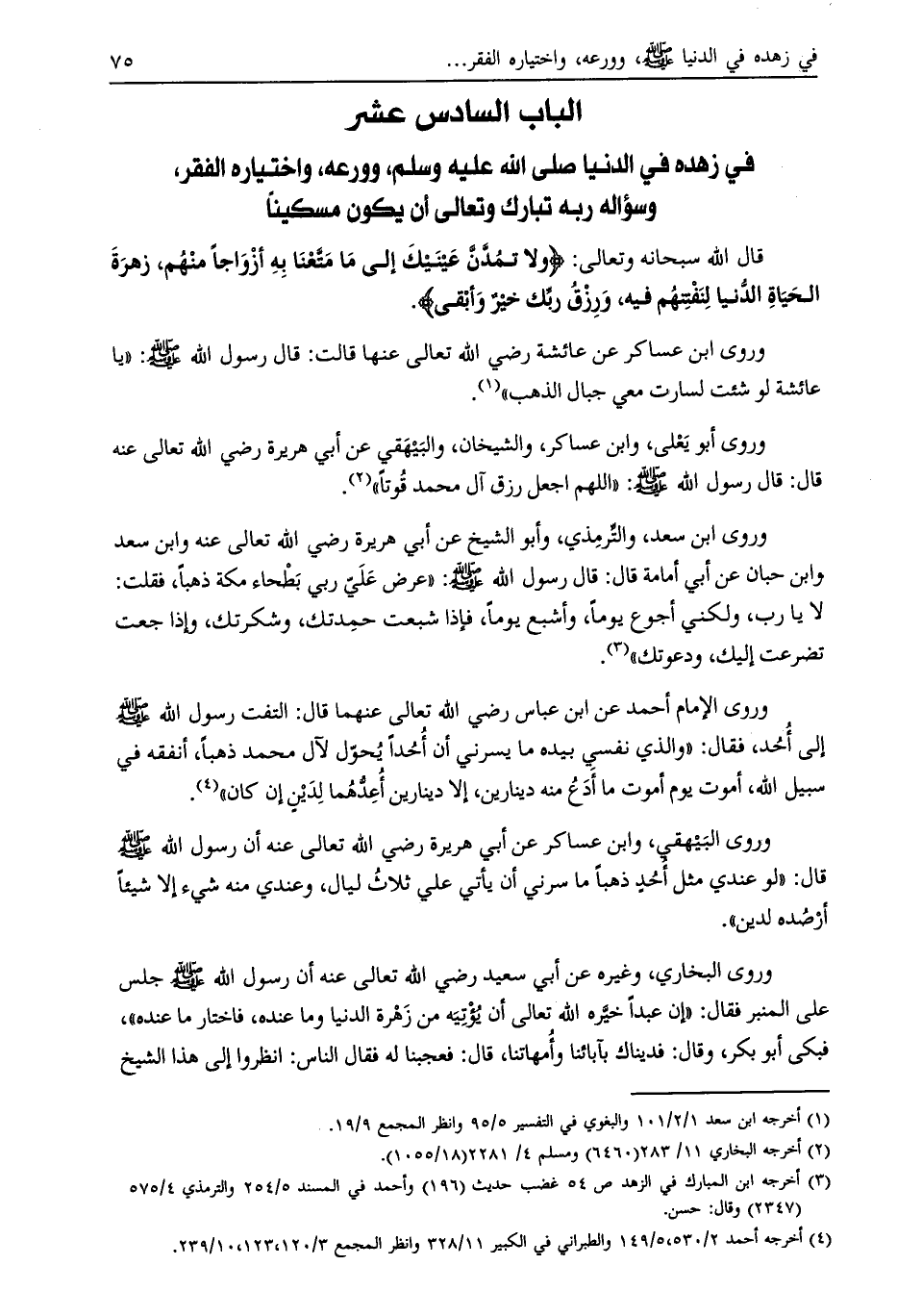 الباب السادس عشر في زهده في الدنيا صلى الله عليه وسلّم، وورعه، واختياره الفقر، وسؤاله ربه تبارك وتعالى أن يكون مسكينا