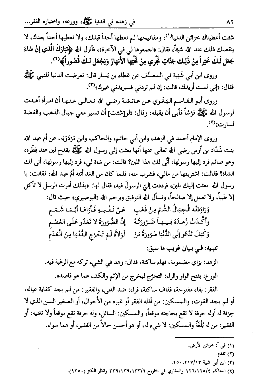 وأكّدت زهده فيها ضرورته ... إنّ الضّرورة لا تعدو على العصم