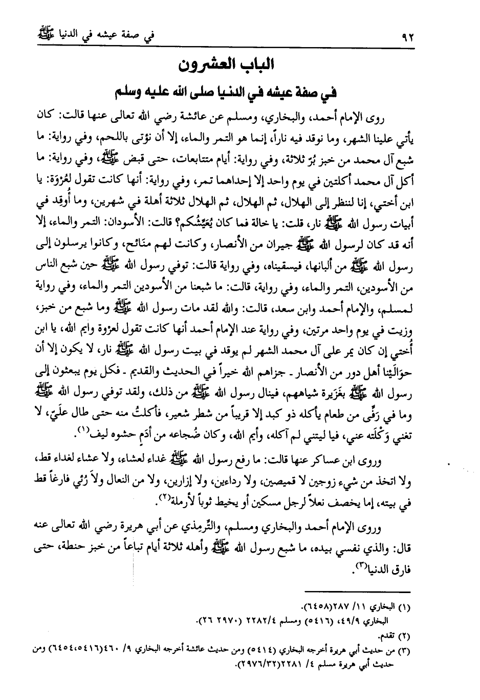 الباب العشرون في صفة عيشه في الدنيا صلى الله عليه وسلم