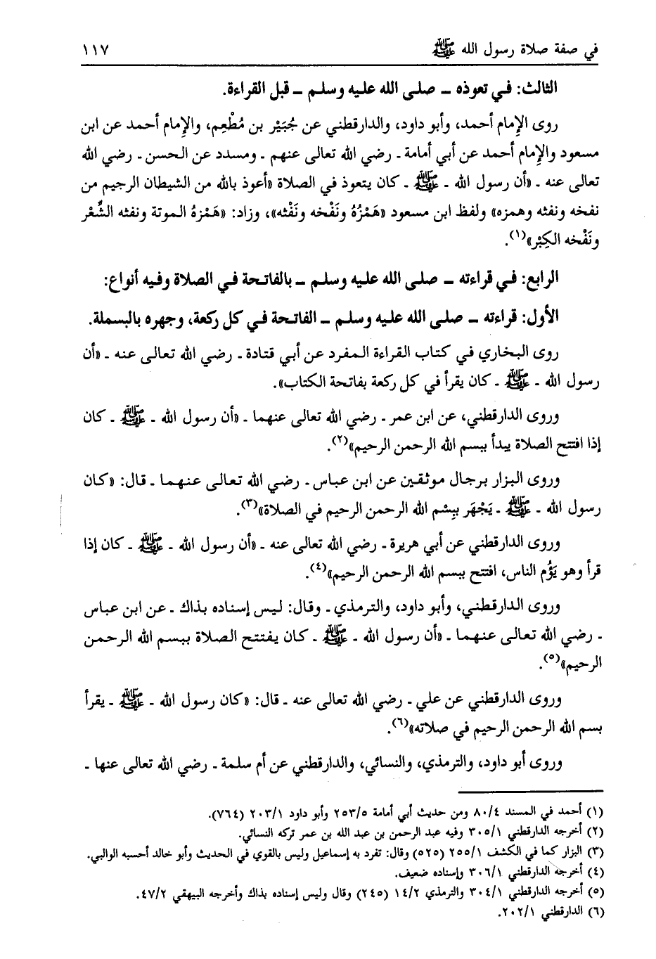 وروى الدارقطني عن أبي هريرة- رضي الله تعالى عنه- «أن رسول الله- صلى الله عليه وسلم- كان إذا قرأ وهو يؤم الناس، افتتح ببسم الله الرحمن الرحيم» [ (4) ] .