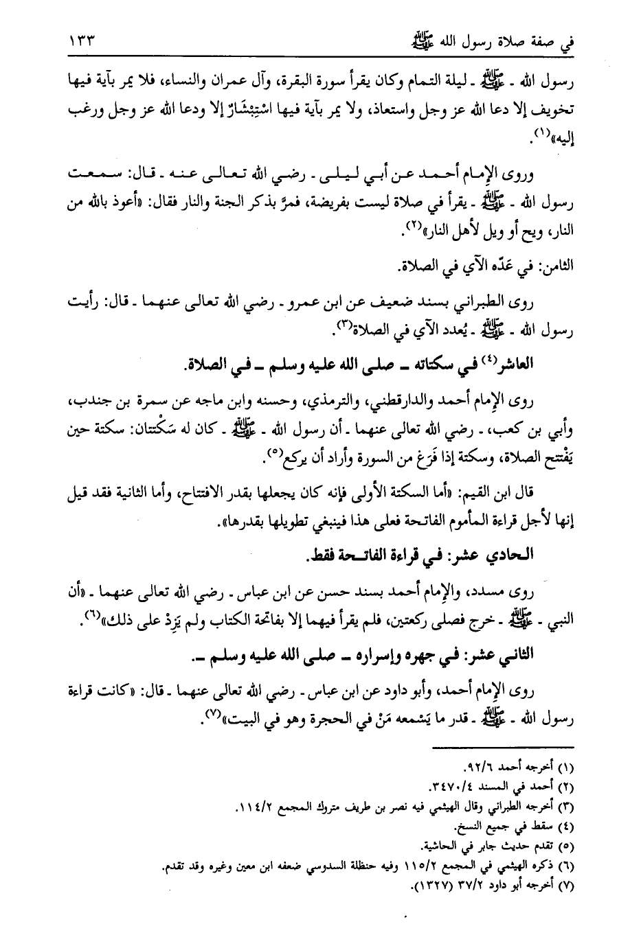 روى الطبراني بسند ضعيف عن ابن عمرو- رضي الله تعالى عنهما- قال: رأيت رسول الله- صلى الله عليه وسلم- يعدد الآي في الصلاة [ (3) ] .