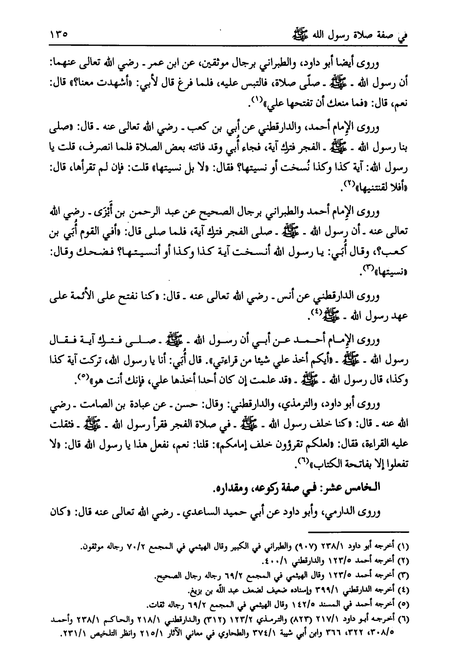 [ (6) ] أخرجه أبو داود 1/ 217 (823) والترمذي 2/ 123 (312) والدارقطني 1/ 218 والحاكم 1/ 238 وأحمد 5/ 308، 322، 366 وابن أبي شيبة 1/ 374 والطحاوي في معاني الآثار 1/ 215 وانظر التلخيص 1/ 231.