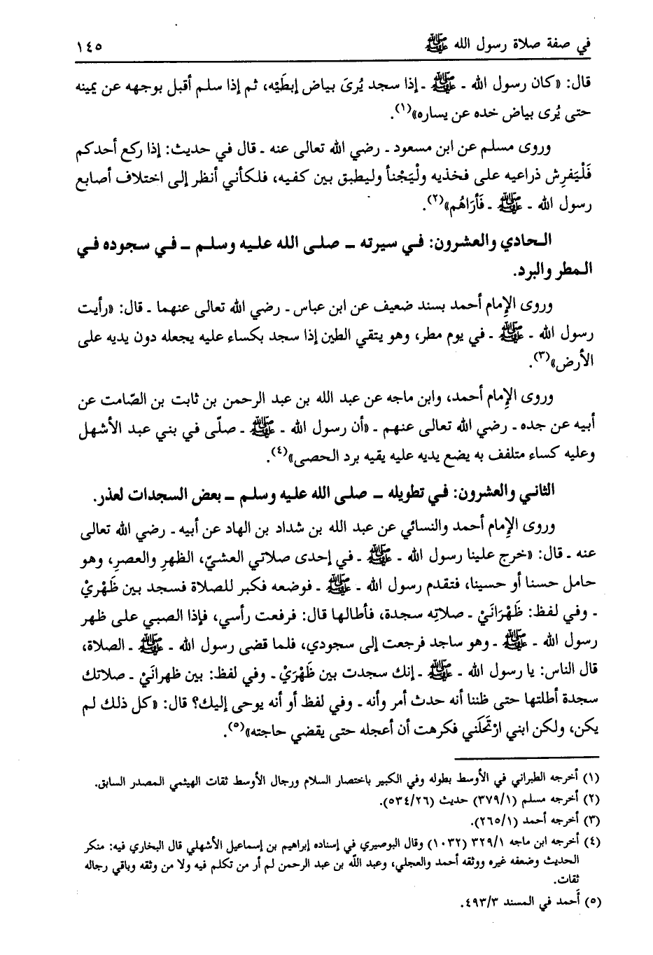الحادي والعشرون: في سيرته- صلّى الله عليه وسلم- في سجوده في المطر والبرد.