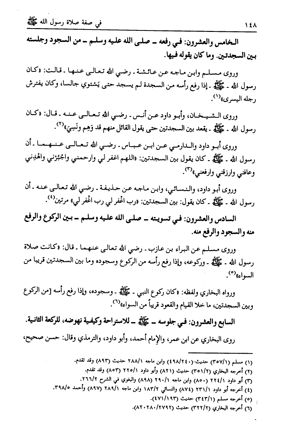الخامس والعشرون: في رفعه- صلى الله عليه وسلم- من السجود وجلسته بين السجدتين. وما كان يقوله فيها.