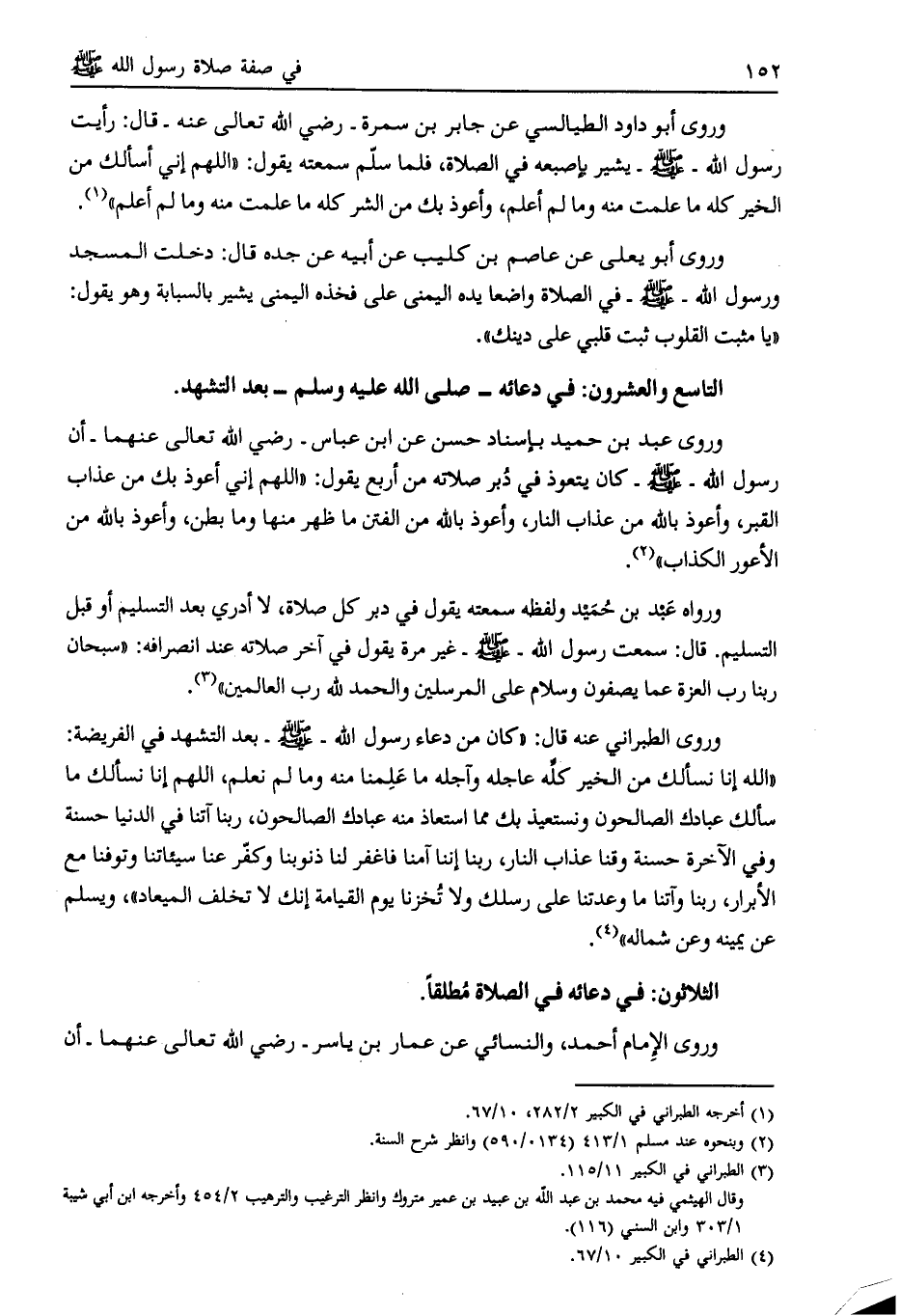 وروى الطبراني عنه قال: «كان من دعاء رسول الله- صلى الله عليه وسلم- بعد التشهد في الفريضة: