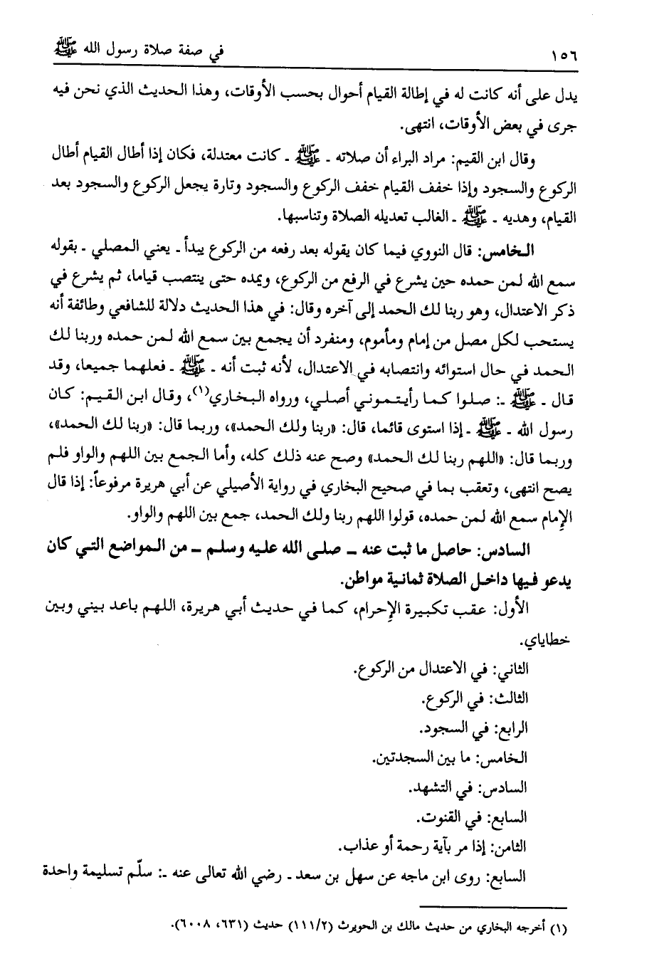 السادس: حاصل ما ثبت عنه- صلى الله عليه وسلم- من المواضع التي كان يدعو فيها داخل الصلاة ثمانية مواطن.