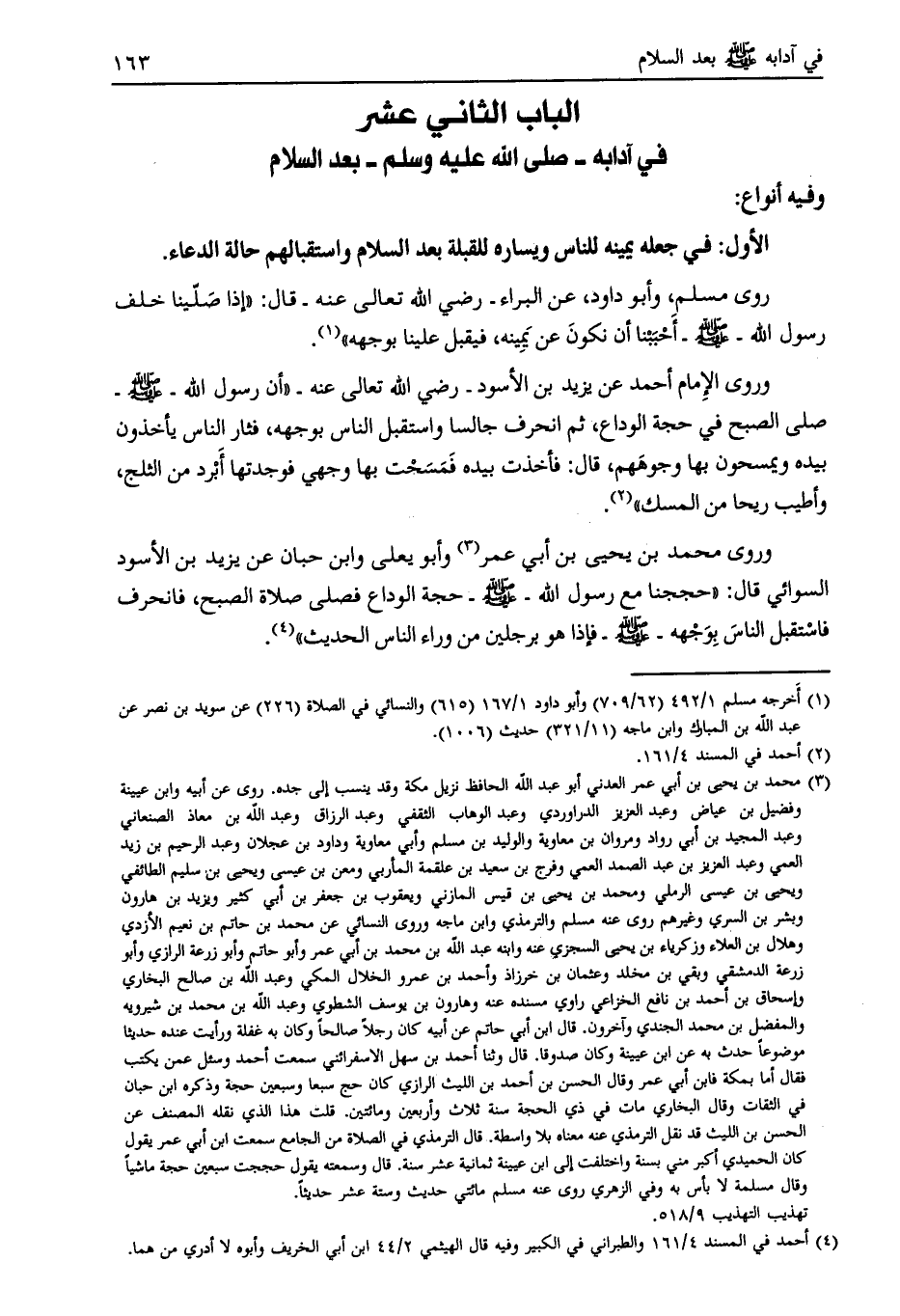 الباب الثاني عشر في آدابه- صلّى الله عليه وسلم- بعد السلام