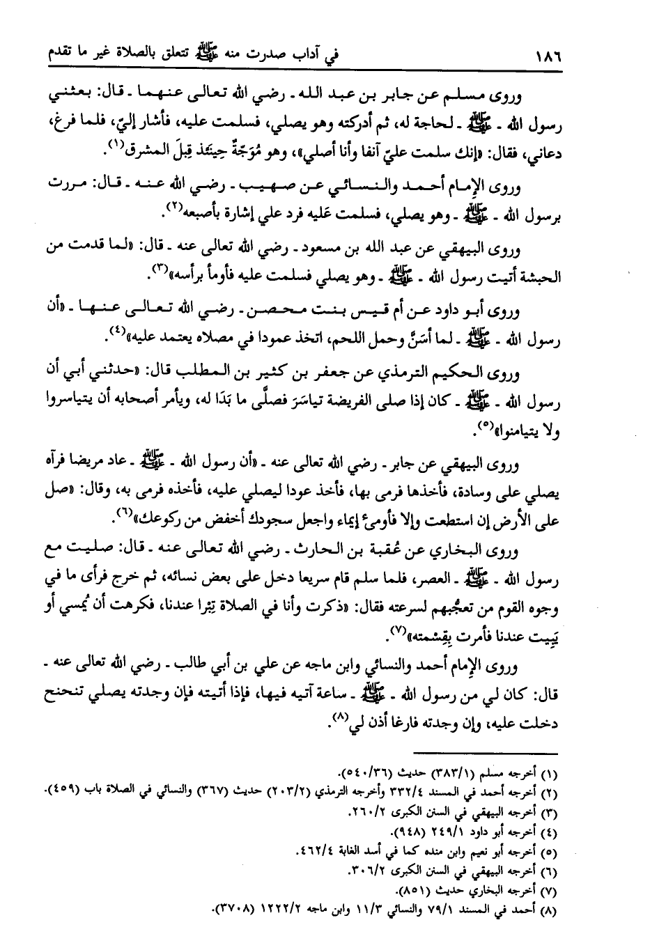 وروى البيهقي عن عبد الله بن مسعود- رضي الله تعالى عنه- قال: «لما قدمت من الحبشة أتيت رسول الله- صلى الله عليه وسلم- وهو يصلي فسلمت عليه فأومأ برأسه» [ (3) ] .