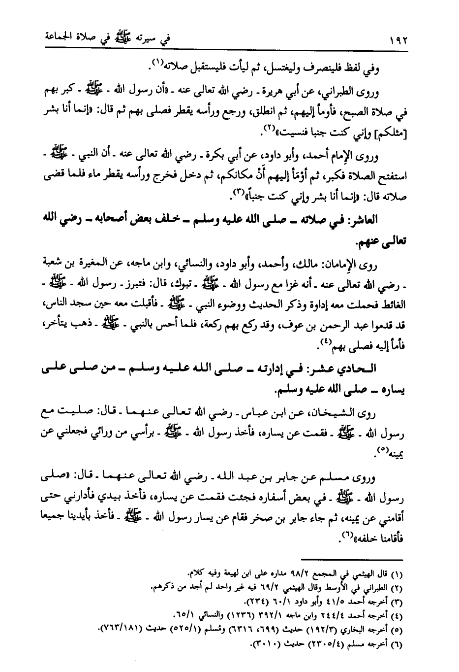 وروى الطبراني، عن أبي هريرة- رضي الله تعالى عنه- «أن رسول الله- صلى الله عليه وسلّم- كبر بهم في صلاة الصبح، فأومأ إليهم، ثم انطلق، ورجع ورأسه يقطر فصلّى بهم ثم قال: «إنما أنا بشر [مثلكم] وإني كنت جنبا فنسيت» [ (2) ] .