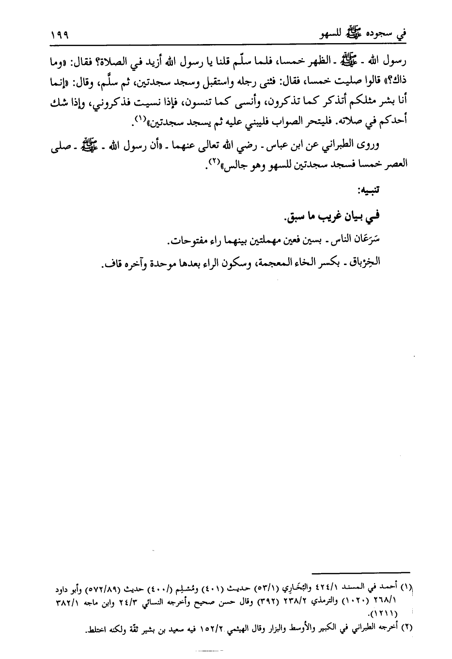 [ (1) ] أحمد في المسند 1/ 424 والبخاري (1/ 53) حديث (401) ومسلم (/ 400) حديث (89/ 572) وأبو داود 1/ 268 (1020) والترمذي 2/ 238 (392) وقال حسن صحيح وأخرجه النسائي 3/ 24 وابن ماجة 1/ 382 (1211) .
