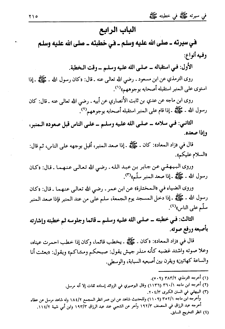 الباب الرابع في سيرته- صلّى الله عليه وسلم- في خطبته- صلى الله عليه وسلم