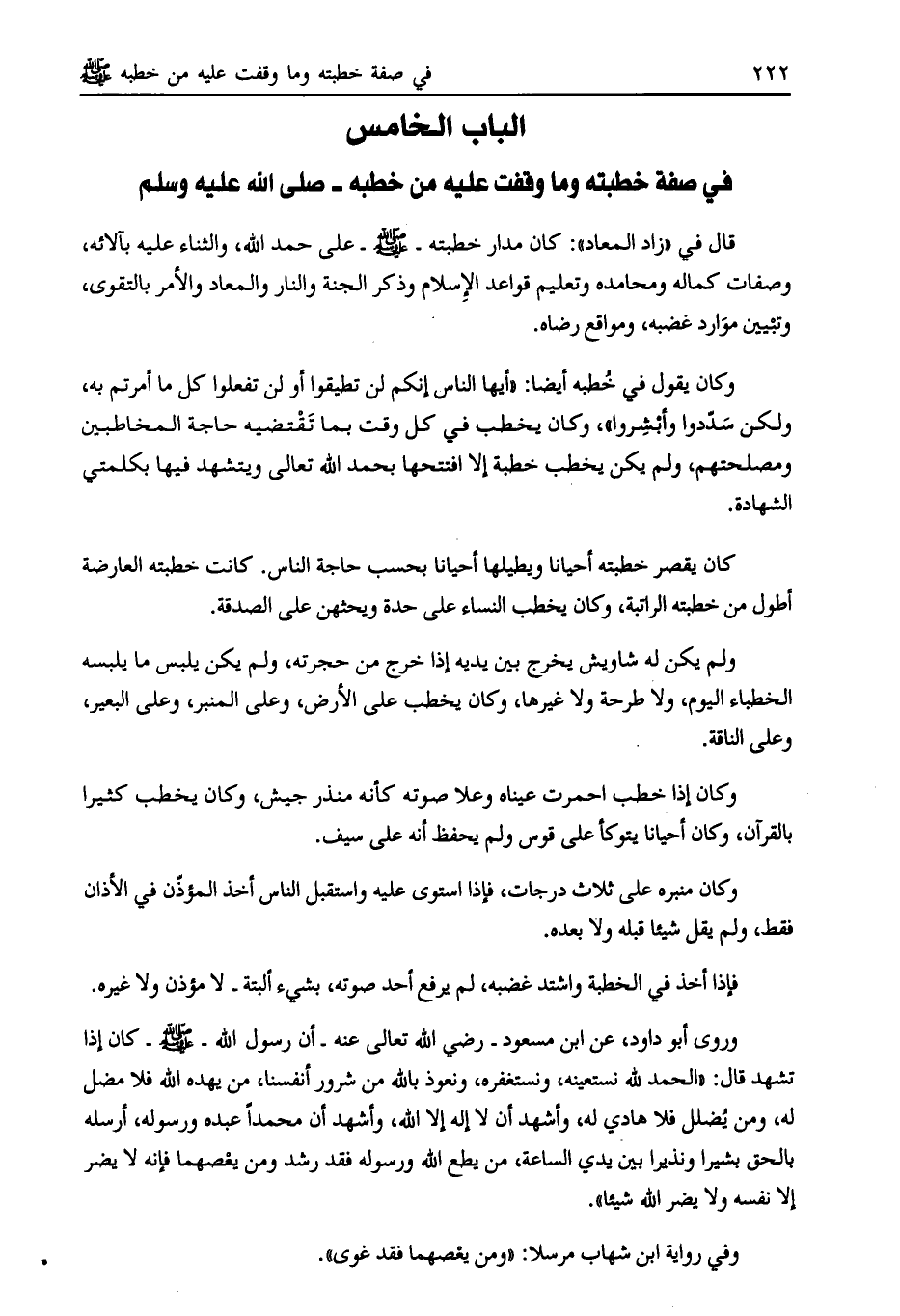 الباب الخامس في صفة خطبته وما وقفت عليه من خطبه- صلى الله عليه وسلم