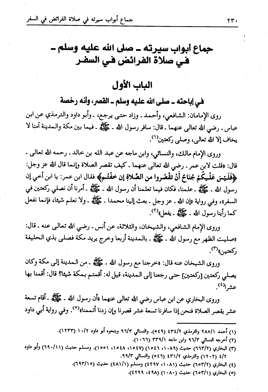 الباب الأول في إباحته- صلّى الله عليه وسلّم- القصر، وأنه رخصة