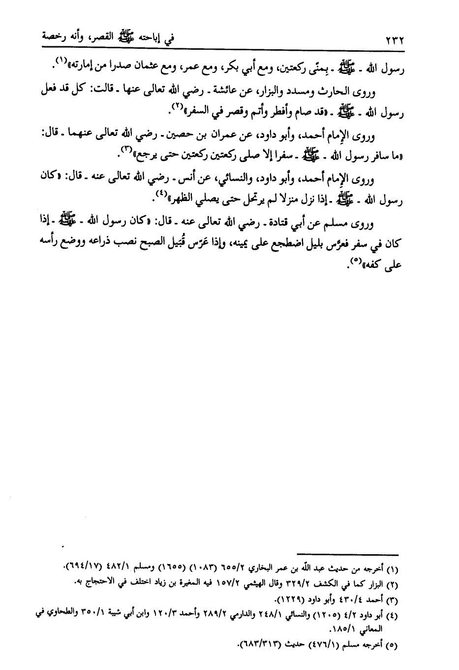 «ما سافر رسول الله- صلى الله عليه وسلم- سفرا إلا صلّى ركعتين ركعتين حتى يرجع» [ (3) ] .