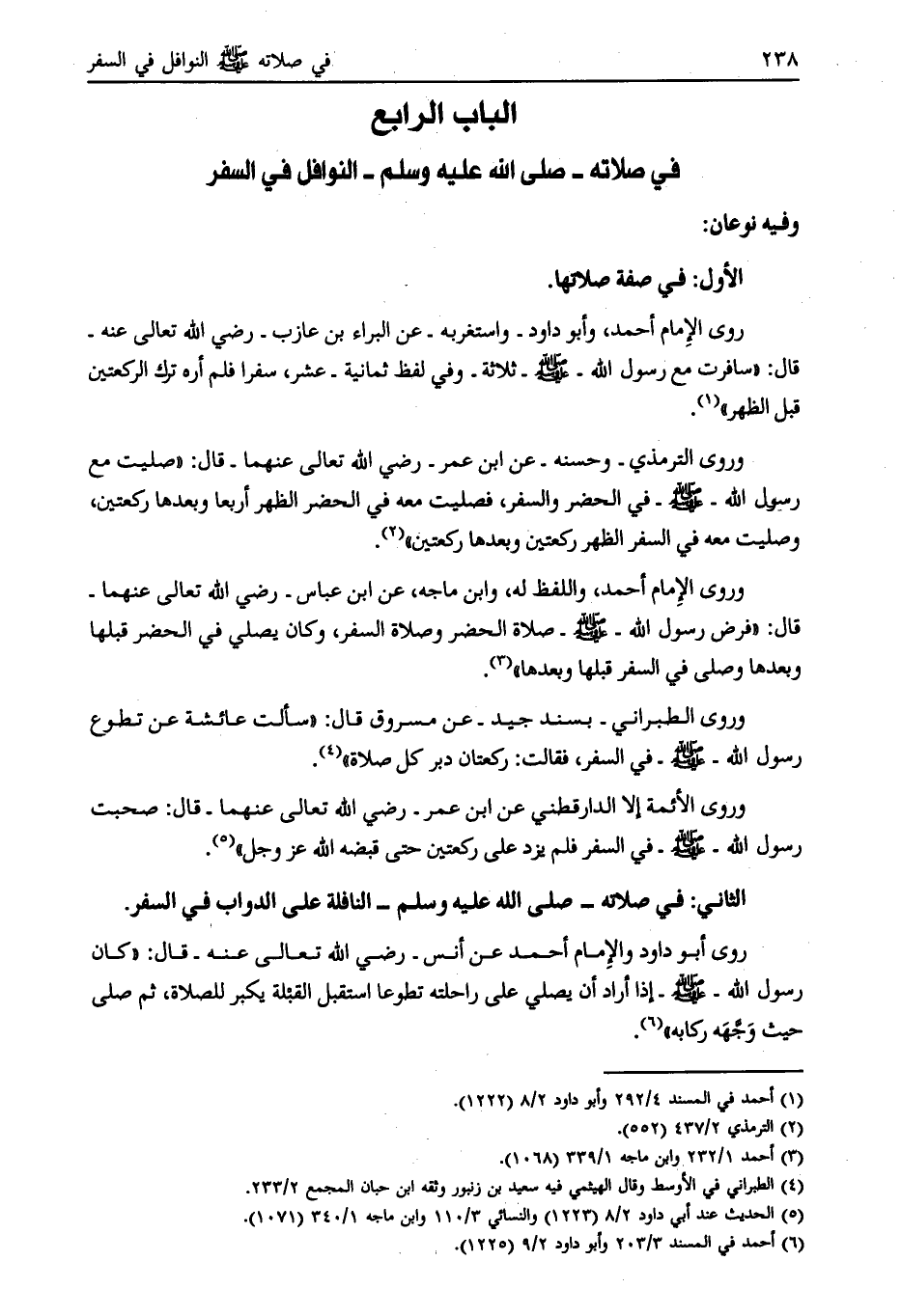 الباب الرابع في صلاته- صلّى الله عليه وسلّم- النوافل في السفر