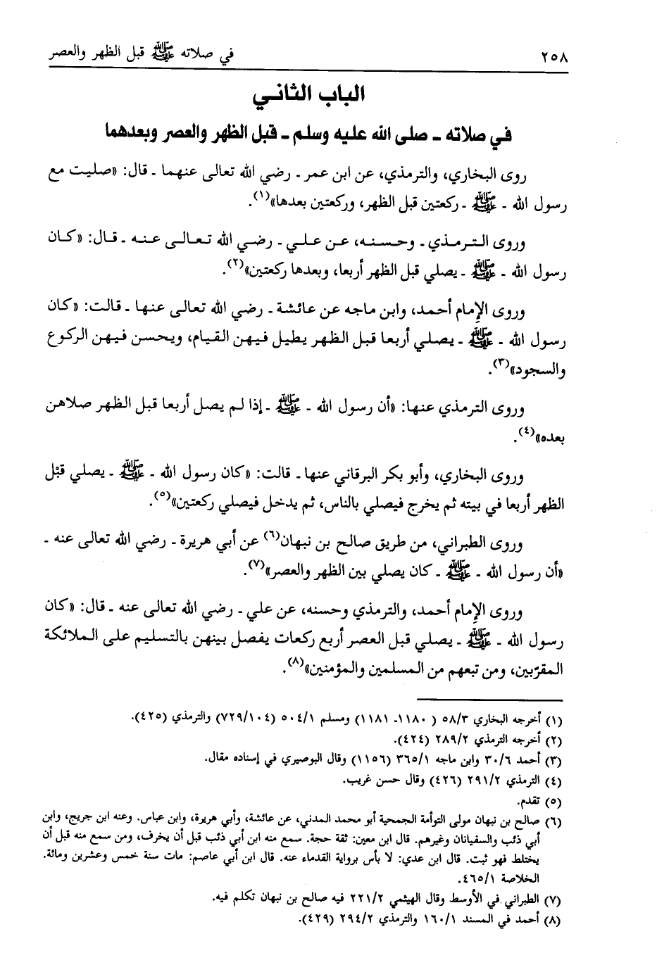 الباب الثاني في صلاته- صلّى الله عليه وسلم- قبل الظهر والعصر وبعدهما