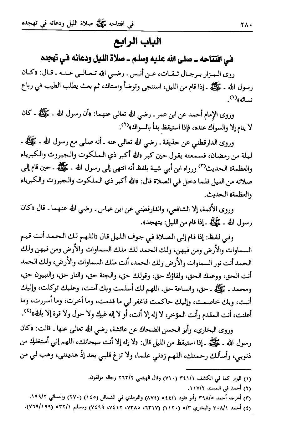الباب الرابع في افتتاحه- صلى الله عليه وسلّم- صلاة الليل ودعائه في تهجده