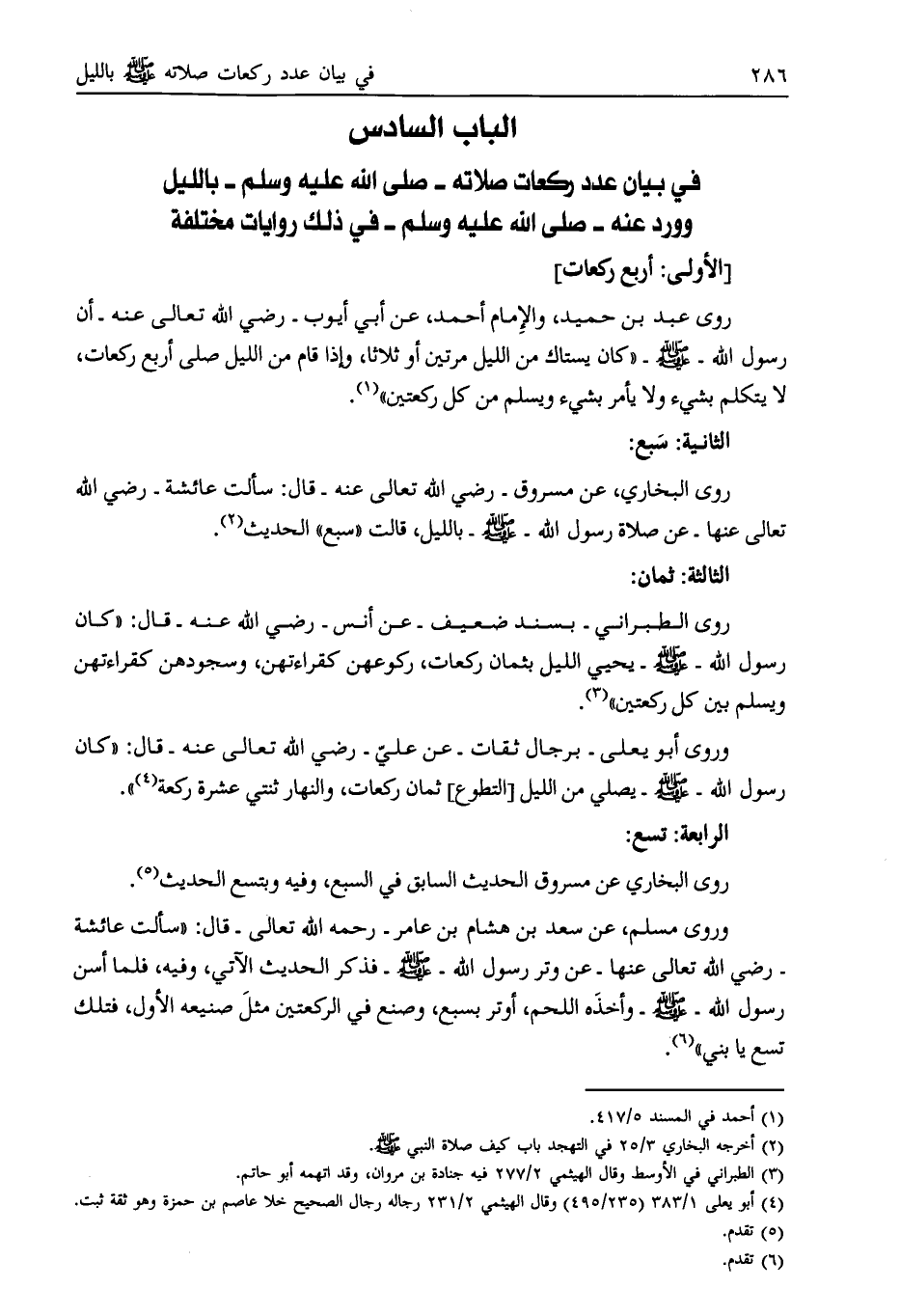 الباب السادس في بيان عدد ركعات صلاته- صلّى الله عليه وسلّم- بالليل وورد عنه- صلى الله عليه وسلم- في ذلك روايات مختلفة