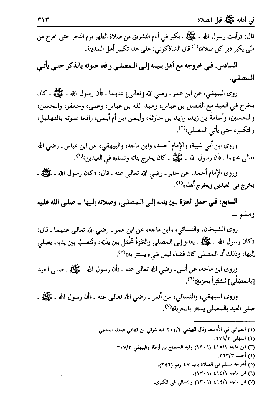 السابع: في حمل العنزة بين يديه إلى المصلى، وصلاته إليها- صلّى الله عليه وسلم-.