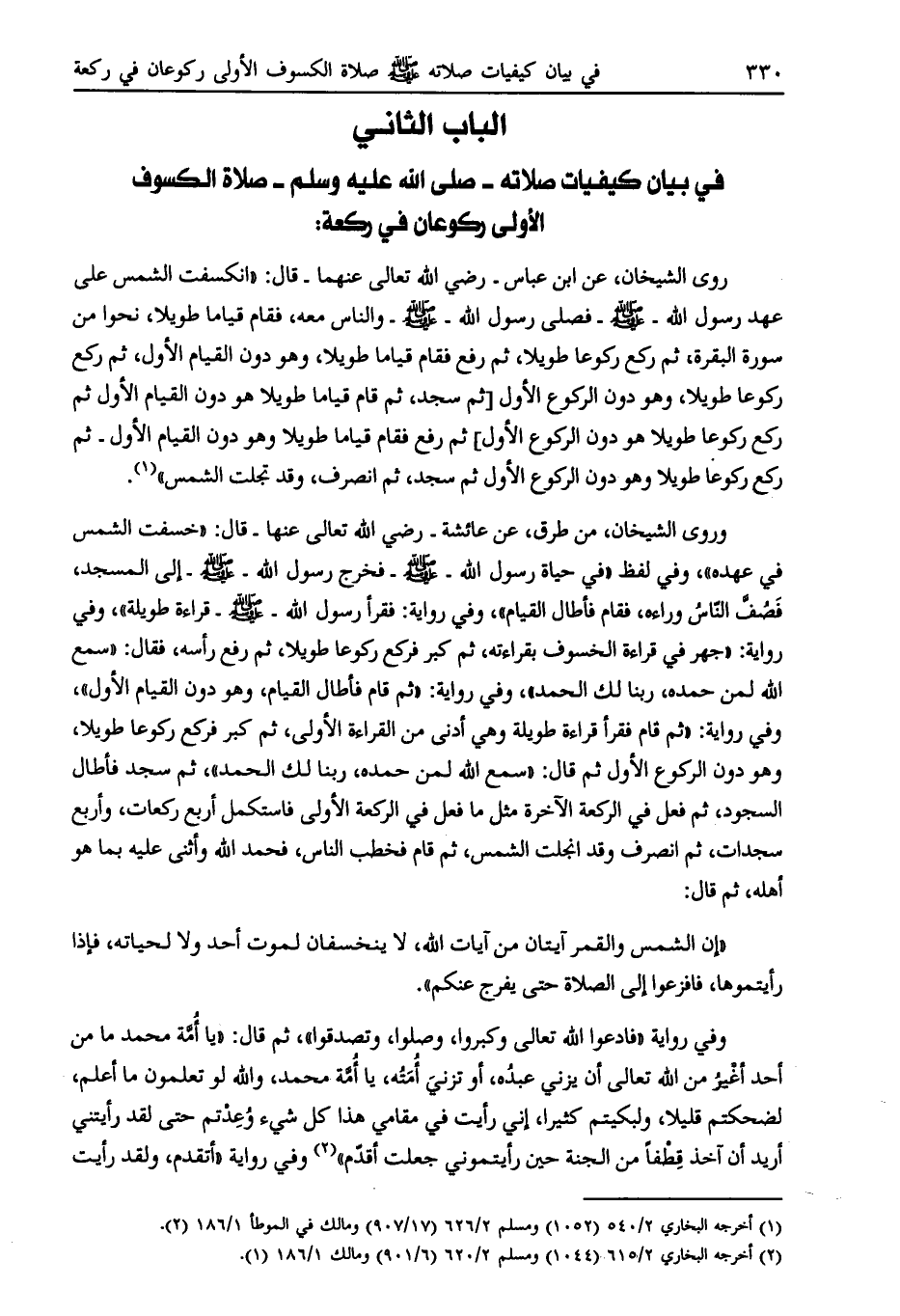 الباب الثاني في بيان كيفيات صلاته- صلّى الله عليه وسلم- صلاة الكسوف