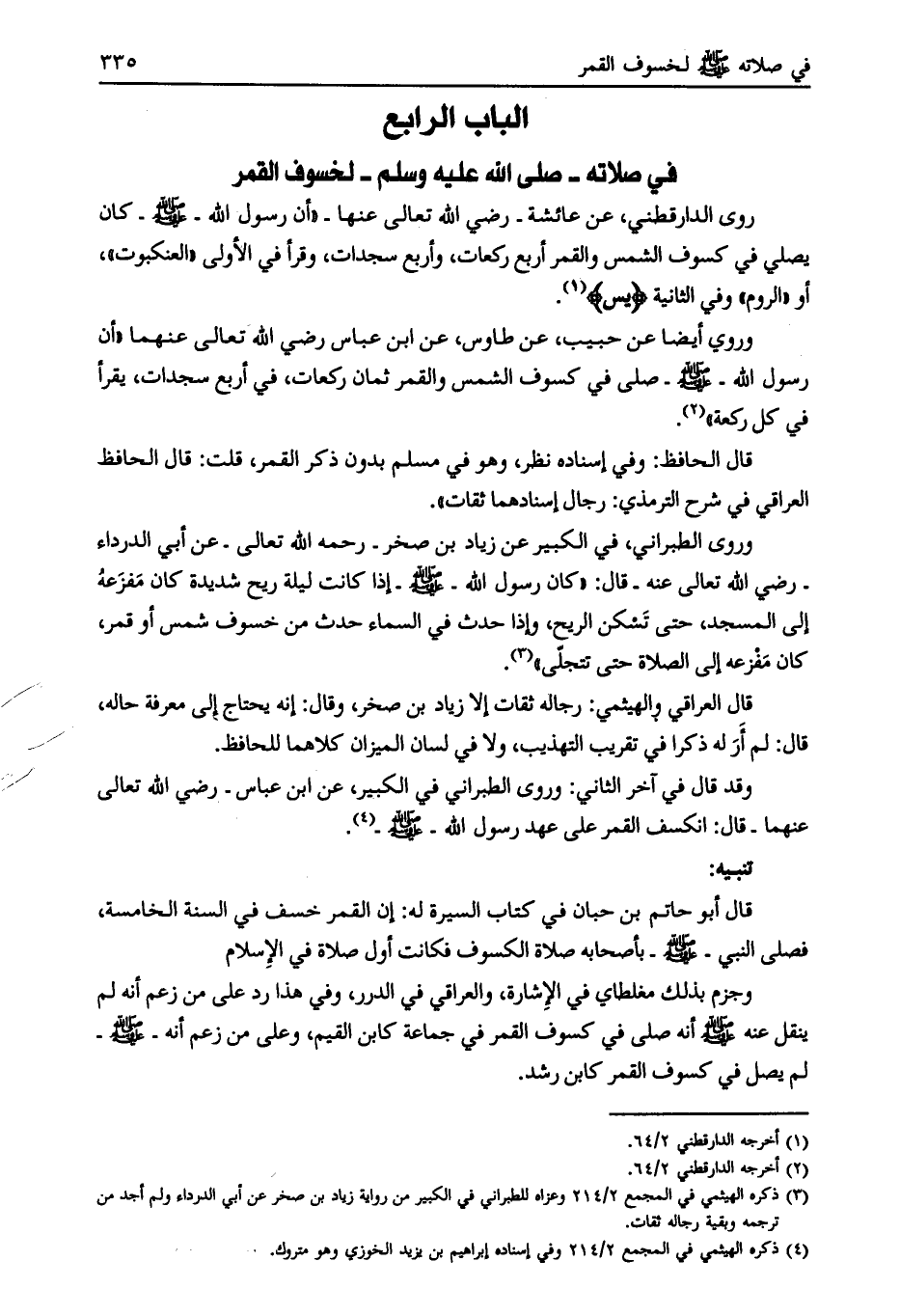 الباب الرابع في صلاته- صلّى الله عليه وسلّم- لخسوف القمر